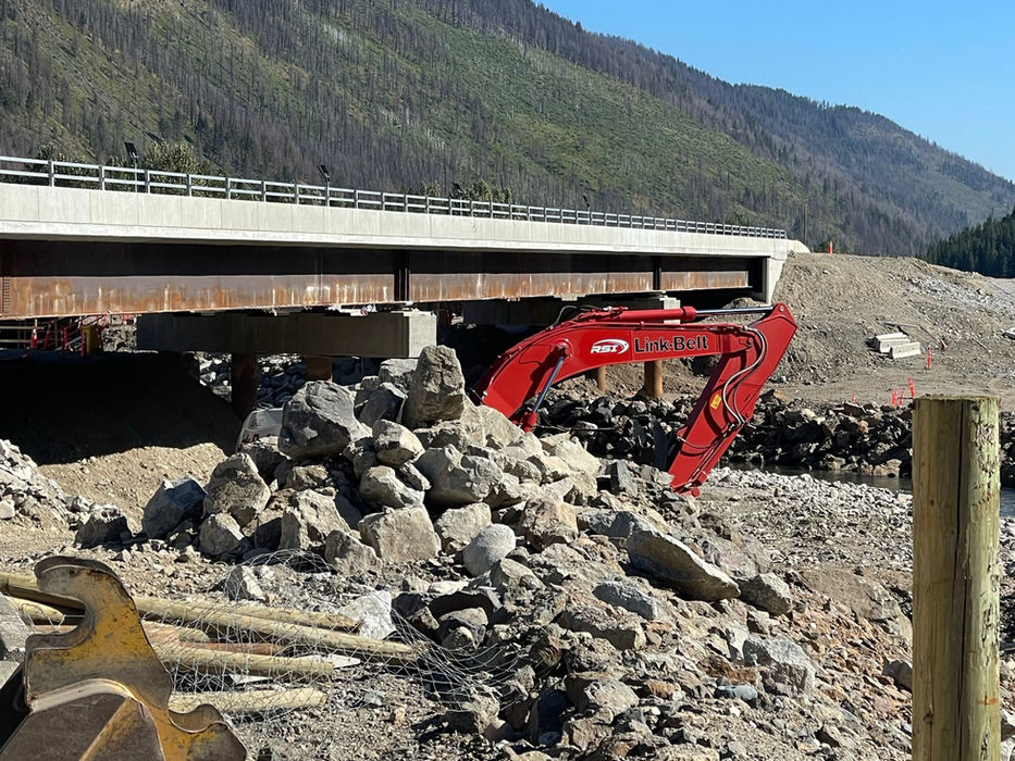 Following initial preventive measures to protect critical infrastructure, RSI played a key role in the reconstruction efforts by providing both manpower and equipment to operate a local Ministry of Transportation and Infrastructure (MOTI) quarry. Our team was responsible for supplying, hauling, and placing Class 250KG-1000KG rip rap armoring to protect the newly installed bridge abutments at the Juliet and Bottletop bridges along the Hwy 5 Coquihalla Highway.